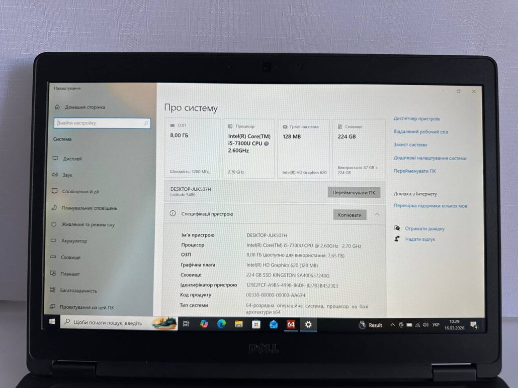 Встановлена Windows 10.