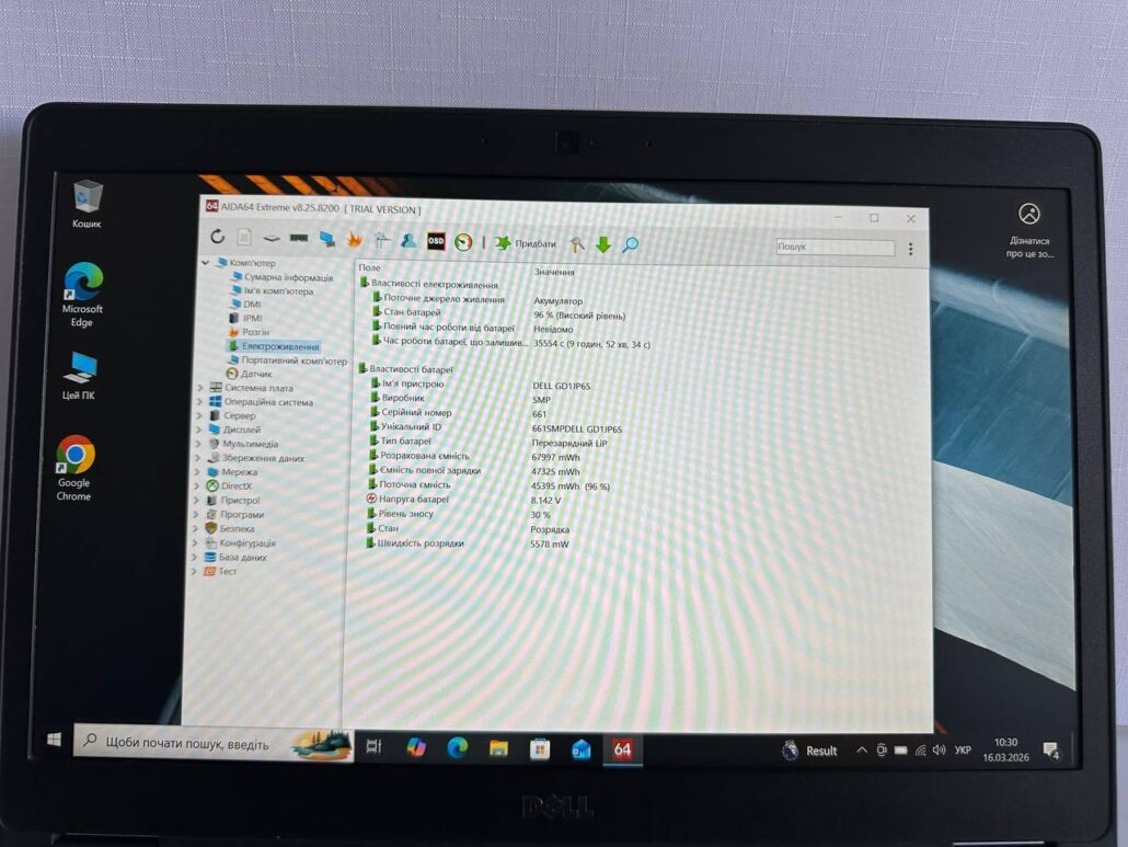 Знос акумулятора 30%.